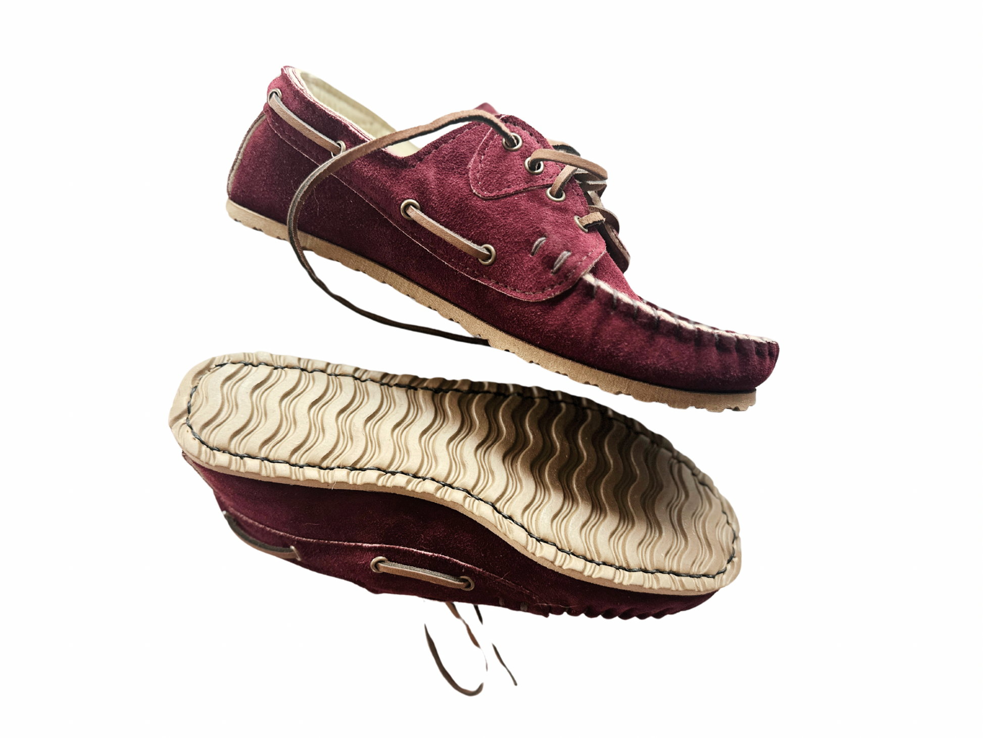 Crafted with precision, the Burgundy Suede Oxford Moccasin features meticulous hand-sewing in a rich burgundy suede, complemented by a luxurious creme deerskin leather lining for an exceptionally comfortable fit. Distinctive attributes encompass a 7mm Tread Flex sole, eight elegant antique brass eyelets, and robust rawhide leather laces.