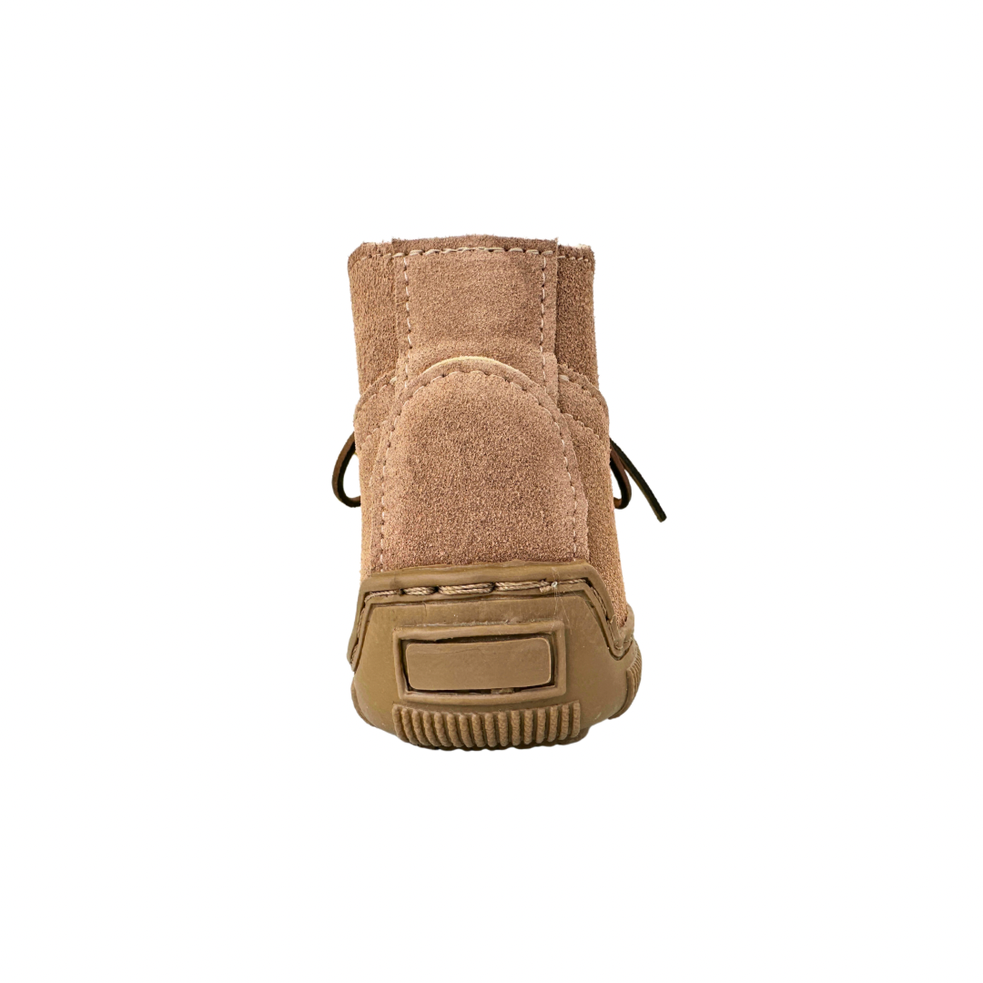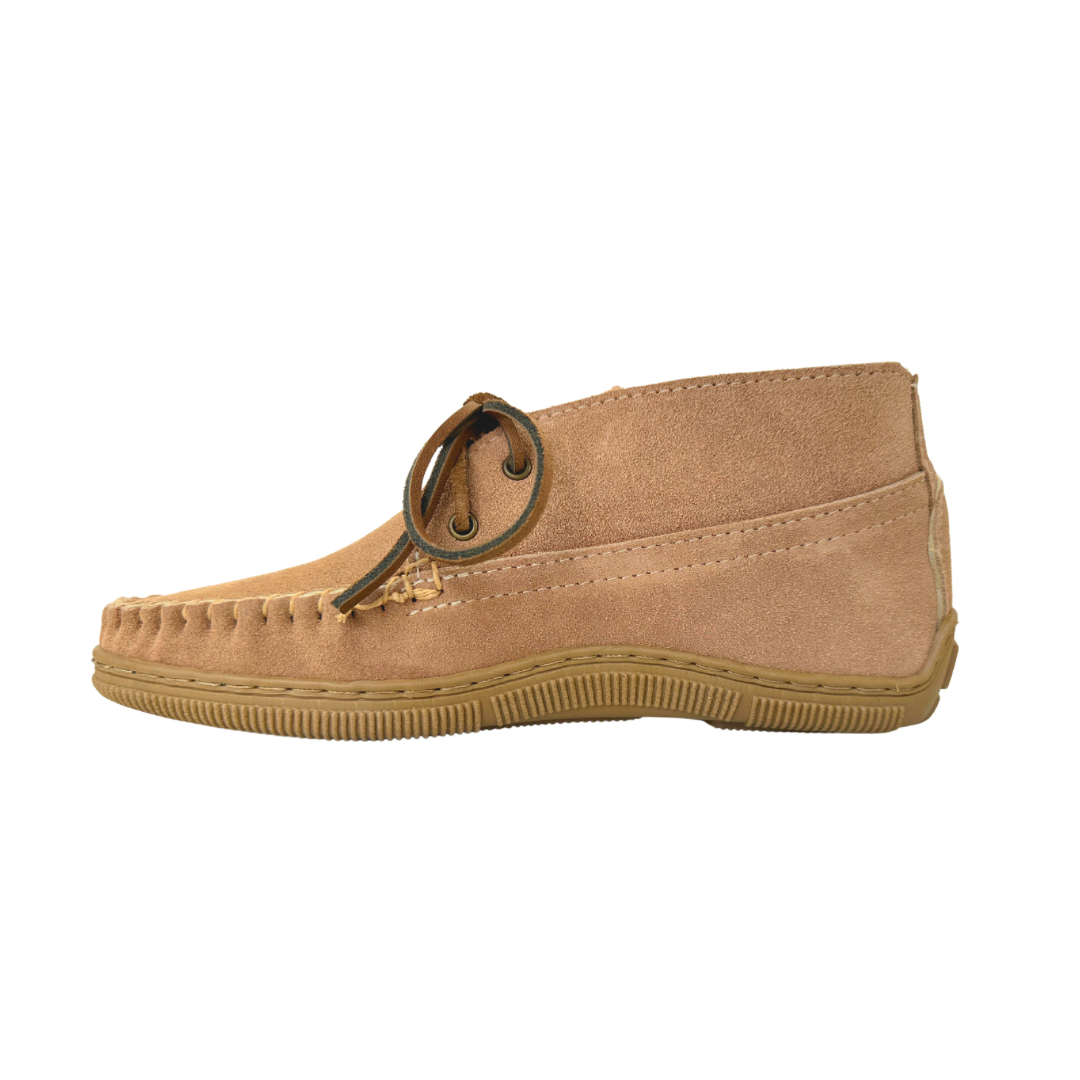 Crafted with precision, the Chukka features meticulous hand-sewing in a soft brown suede, complemented by a luxurious creme deerskin leather lining for an exceptionally comfortable fit. Distinctive attributes encompass a wrap sole, elegant antique brass eyelets, and robust rawhide leather laces.