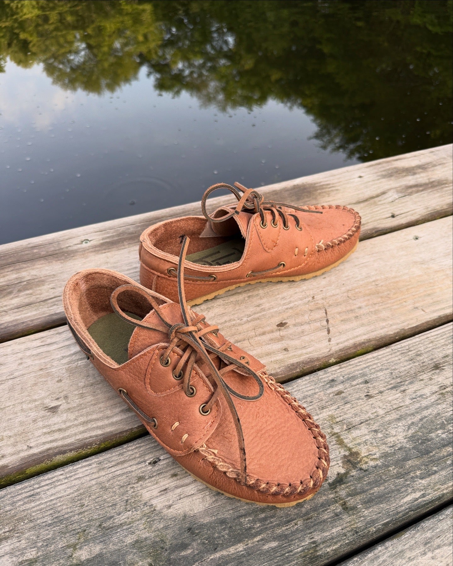 Kindly peruse the sizing information provided below. It's important to note that each pair is custom-crafted to suit every customer, which entails a 3-4 week delivery period. These moccasins are proudly produced in the United States.