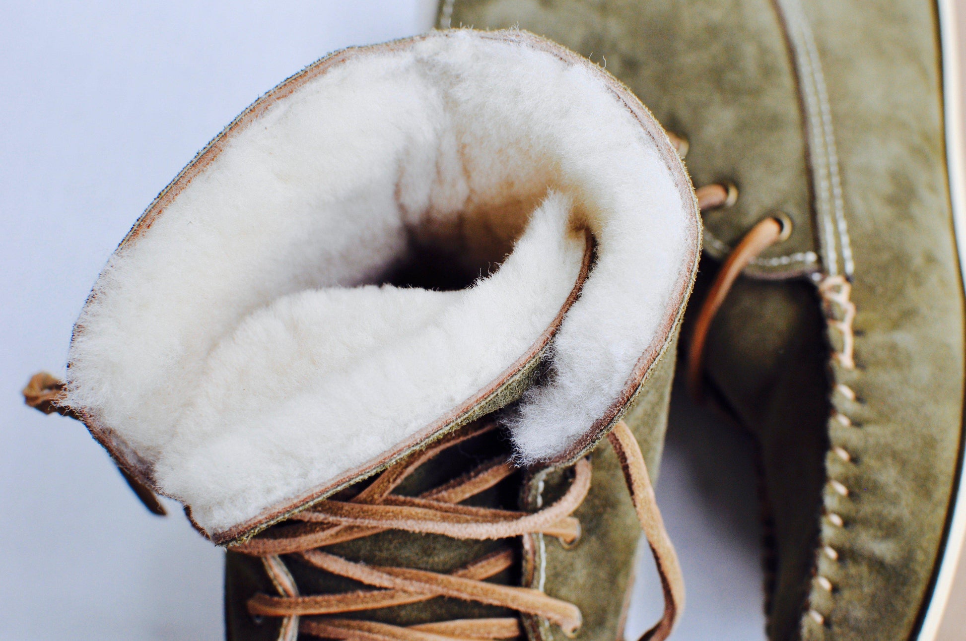 Shearling Lined Option: Keep your feet warm and cozy on chilly hikes with the soft shearling lining. Also availbe with leather creme deerskin insole.
